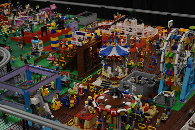 After finishing all of my builds and with Space Port still in its carrying cases, the build table was finally clean. I finally picked up the pieces and this picture above is what I had. I actually had to do some disassembly to determine where the pieces went, as the picture below shows. Fortunately the rotating screen did not get damaged other than a few cosmetic pieces.